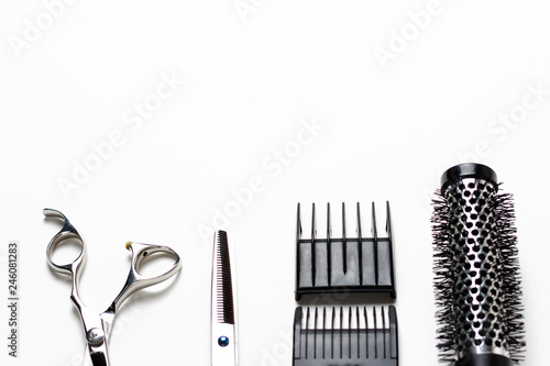 hair, hairdresser, salon, white, background, scissors, set, style, comb, tool, hairdresser, hair care, fashion, styling, barber, accessory, stylish, care, beauty, service, modern, tool, closeup, equipment, professional, barbershop, design, black, trendy, concept, business, copy space, creative, pastel, no people