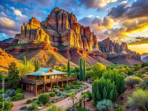 rustic, inn, towering, formation, colourful, sedimentary, layer, natural, wilderness, adventure, exploration, travel, scenic, succulent, retreat, hideaway, secluded, dramatic, eroded, weathered, geologic, ore, mineral, gorge, plateau, barren