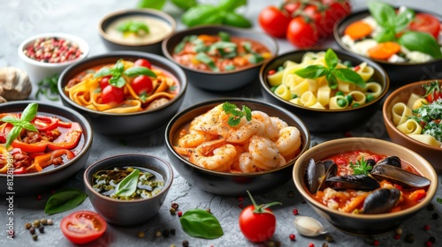 Screenshot of the website, various Italian dishes in bowls on a grey background