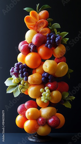 Sculptural composition featuring a vibrant assortment of fresh seasonal fruits