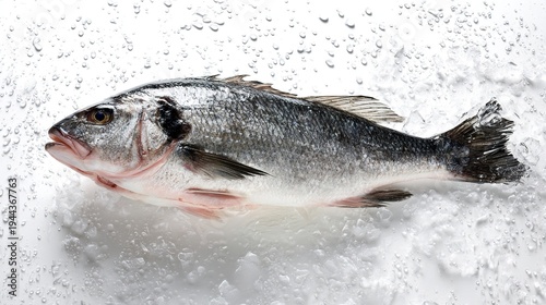 seabass. Fresh whole sea bass on ice, emphasizing freshness and quality in seafood. menu design, packaging mockups, designed for food delivery and cloud-kitchen brand materials.