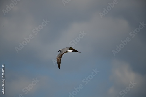 seabird flying on a sunny day at a beach