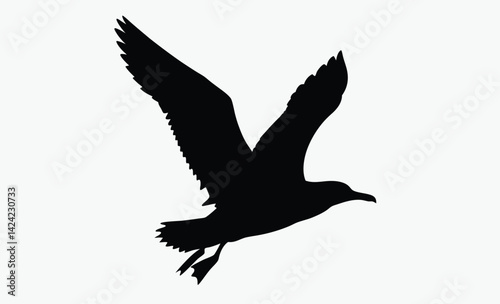 Seagull flying silhouette, bird vector, isolated design, Seagull flying silhouette isolated on white background, Vector illustration