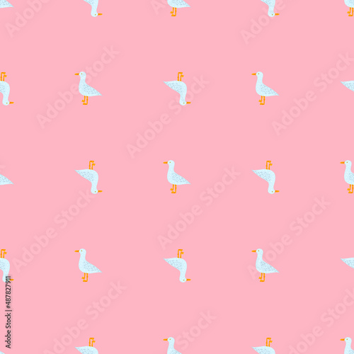 Seagulls standing seamless pattern. Background of sea birds.