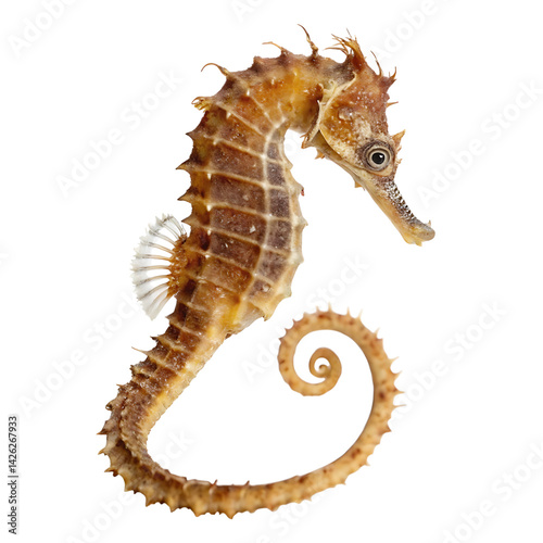 seahorse Fish in transparent background.A Detailed Close Up of a Small Brown Seahorse on a Transparent background
