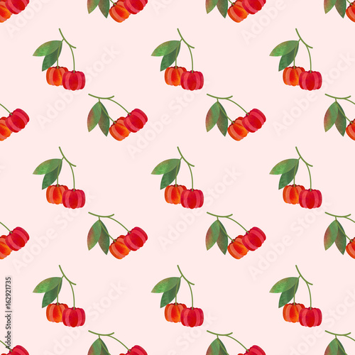 Seamless background image colorful watercolor texture tropical fruit pitanga
