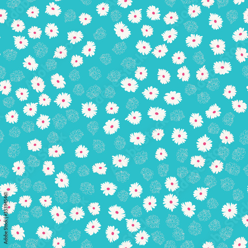 Seamless ditsy pattern in small cute wild flowers of daisy. Delicate bouquets. Liberty style millefleurs. Floral background for textile, wallpaper, pattern fills, covers, surface, print, wrap