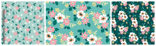 floral, pattern, flower, cute, seamless, print, simple, small, green, pastel, tile, liberty, tiny, botanical, daisy, abstract, vector, ornament, graphic, collection, decorative, romantic, plant, meadow, art, colours, motif, pretty, repeat, design, drawing, illustration, girlie, spring, surface