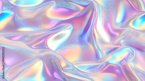 Seamless Holographic smooth, iridescent fabric with shifting hues of pastel colors creates a dreamy, abstract texture.