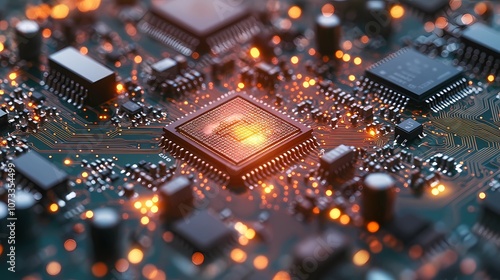Seamless microchip texture, showcasing electronic circuit designs with intricate details, providing a modern tech-inspired backdrop for various digital projects