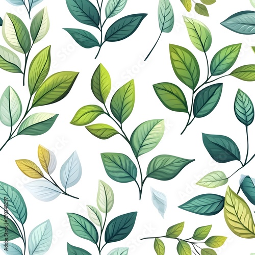 Seamless Natural Floral Pattern with Fresh Vibrant Leaves on White Background