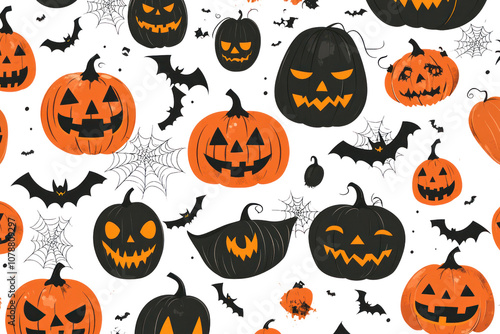seamless, pattern, variety, skittish, pumpkin, silhouette, different, shape, size, including, traditional, jack, lantern, carved, face, illustration, halloween, background, vector, autumn, seamless pattern, orange color, season, october, horror, celebration, decoration, design, evil, smiling, night, repetition, fear, cartoon, cute, design element, fun, wrapping paper, symbol, no people, textile, vegetable