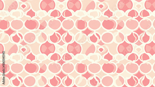 Seamless pattern featuring oriental geometric designs with pastel pink girly motifs perfect for fabric prints and home decor