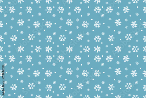 Seamless pattern of white snowflakes on a blue background, perfect for winter and holiday designs