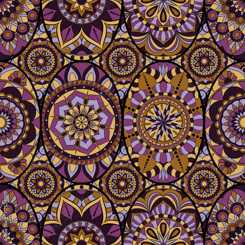 Seamless pattern tile with mandalas. Vintage decorative elements. Hand drawn background. Islam, Arabic, Indian, ottoman motifs. Perfect for printing on fabric or paper.