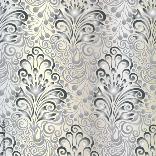 Seamless pattern, vector. Hand drawn damask style silver pattern on a white background.