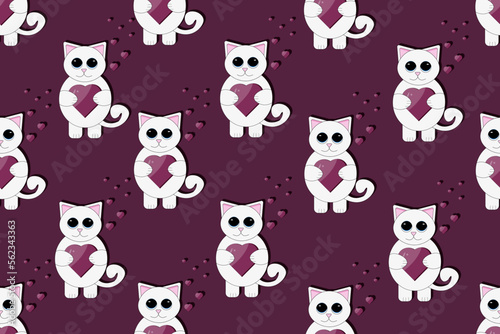seamless, pattern, cartoon, white, cat, nubes, hand, cut-out, paper, style, big, horizontal, website, valentine, day, banner, cat, valentine, eye, wallpaper, repeat, background, concept, poster, card, vector, illustration, animal, flier, japanese, chinese, love, character, wedding, flat, doodle, shadow, holding, hold, design, template, pet, art, felino, tail, fabric