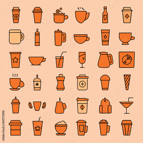 icon, icon, hot drink, vector, cup, set, drink, symbol, tea, food, glasses, illustration, cocktail, beer, cafes, signs, eatery, beverage, design, mug, silhouette, espresso, wine, milk, bottle