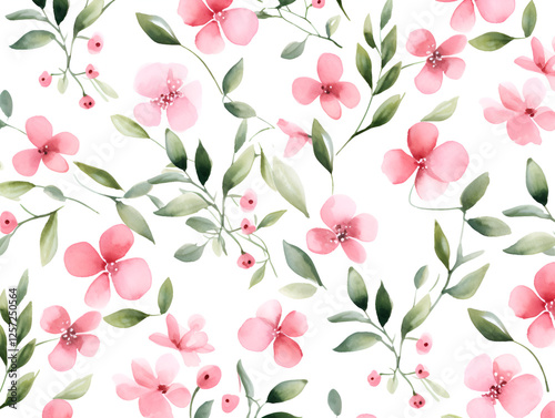 Seamless Pink Floral Pattern with Watercolor Blossoms
