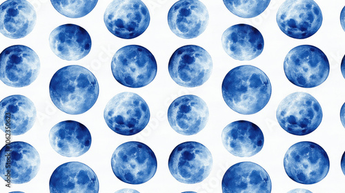 Seamless watercolor pattern of blue moon phases on a white background perfect for creative projects textiles and wallpapers