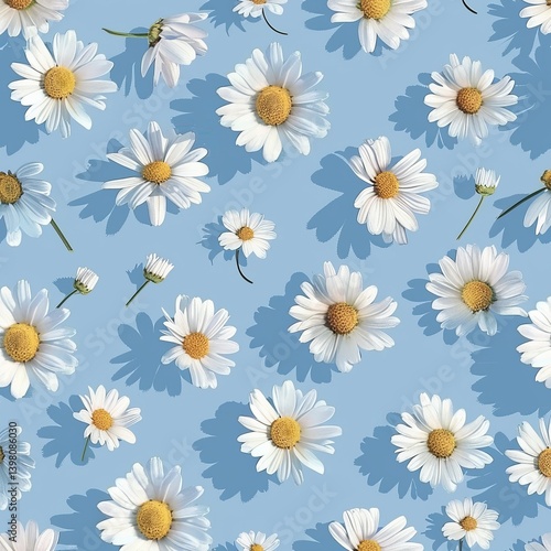 seamless, pattern, watercolor, chamomile, flower, white, blue, background, drawing, abstract, illustration, floral, design, artistic, decorative, textile, fabric, wallpaper, wrapping, paper, motif, repeating, surface, botanical, hand-painted, detailed, intricate, aesthetic, creative, stylish, contemporary, classic, vintage, rustic, natural, organic, fresh, blooming, bouquet, arrangement, composition, elegant, charming, delicate