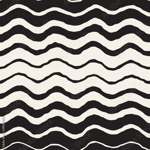 Seamless Wavy Hand Drawn Stripes Pattern. Repeating Vector Texture.