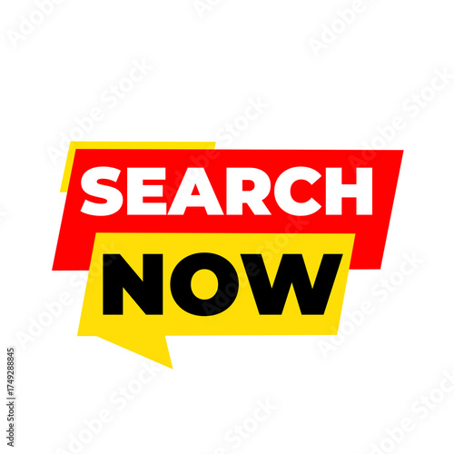SEARCH Now png, red colour icon, magnifying glass concept, discovery idea label, clean flat style