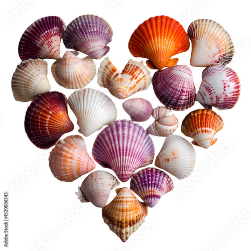 Seashells Arranged in a Heart Shape isolated on transparent background