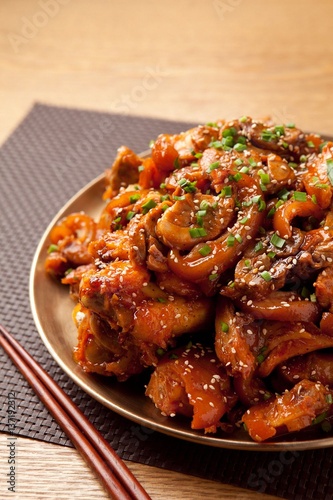 food, chicken, meat, dish, meal, korean food, kimchi, chopstick, deliciously, eatery, cafes, favourite, plate, kitchen, lunch, delicious, up high, background, banner, signs, board, concept, overhead, lighting, topview, closeup, ingredient, homemade, eat, cookery, epicure, receipe