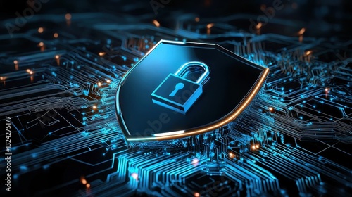 Secure Digital Shield Protecting Confidential Data from Cyber Threats and Network Vulnerabilities Cybersecurity concept with lock symbol digital circuit board