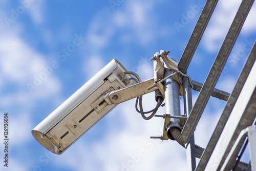 security cctv cameras with blue sky background