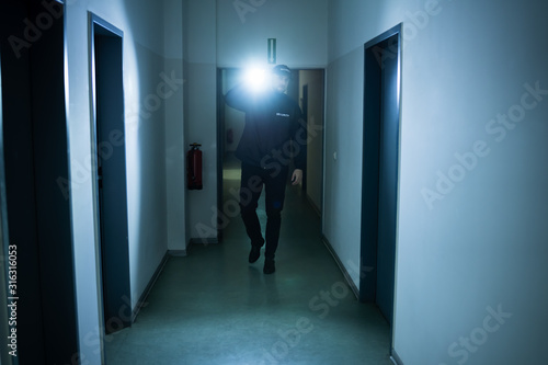security, guard, flashlight, uniform, event, night, surveillance, dark, service, monitoring, building, watching, inspection, bodyguard, man, accounting, officer, late, office, secure