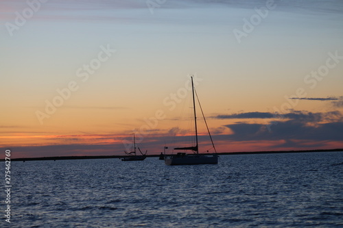 sunset, boat, sea, water, sailboat, yacht, sail, sailing, ocean, sun, heaven, deliver, sunrise, dusk, travel, horizon, summer, coast, calm, nature, silhouette, see, cruise, cloud, beach