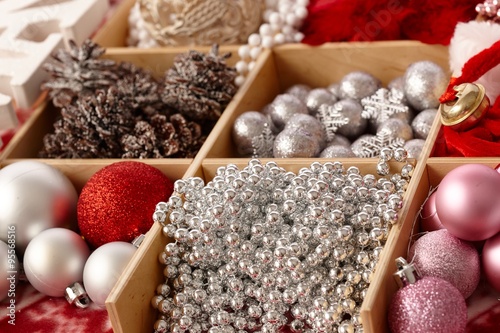 christmas, ornament, decoration, winterly, season, celebration, christmas, celebrate, closeup, decoration, still, life, holiday, winter, eve, seasonal, ornament, december, indoor, selection, shiny, wooden, compartment, still life, ball, bulb, stylish, closeup, variety, horizontal, no, people, object, nobody, close, silver, photo, object, image, colours