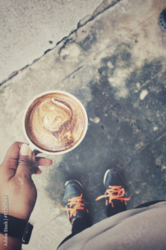 aroma, art, breakfast, brown, cafes, caffeine, cappuccino, hot drink, cream, cup, drink, espresso, foot, foam, food, hot, italian, latte, lifestyle, love, milk, romantic, selfie, shoe, sneaker, style, vintage, mocha