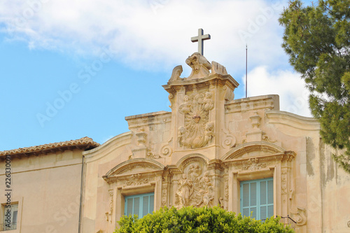 alicante, community, spain, architecture, sculpture, art, stone, patrimony, historical building, cult, religious, catholic, tower, battlement, seminary, saint, michael, cupola, cupola, cross, parkland, pine, pinewood
