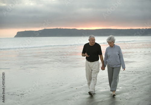 senior, couple, husband, wife, retirement, walking, exercise, romance, love, human relationships, marriage, companionship, elderly, talking, beach, sunset, dusk, ocean, sand, san diego, california, american, man, woman, healthy, health, discussion, mature, adult, happy, successful, retired, social security