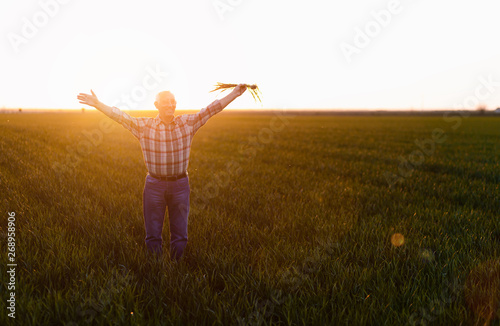 senior, farmer, agriculture, field, standing, examining, rancher, wheat, working, farming, men at work, inspection, crop, farm, portrait, smiling, rural, man, nature, background, spring, agricultural, country, countryside, landscape, outdoors, cultivated, male, plant, farmland, person, sky, organic, produce, looking, one person, sunset