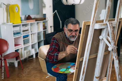 senior man painting at his home