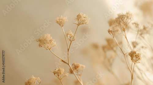 Sensual delicate beige background delicate dry flower in winter in February in Chicago : Generative AI