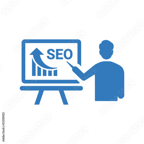 Seo, training, performance icon. Blue vector graphics.
