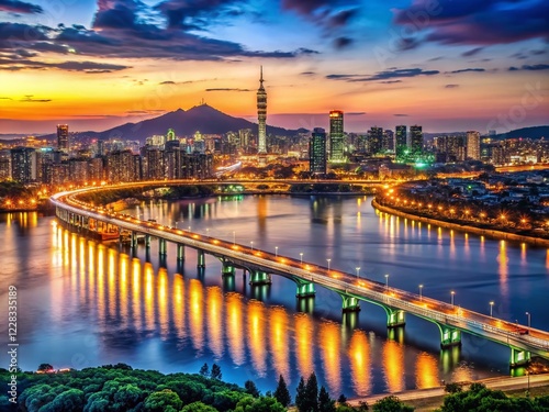 seoul, night view, south korea, city landscape, night photography, city landscape, city lights, bridge, tower, korea, night, scenic, travel, tour tourism, photo, landscape, skyline, panorama, view, beautiful, amazing, stunning, breathtaking, picturesque, iconic, landmark, evening, dark, illuminated, sparkling, calm, serene, peaceful, tranquil, romantic, city, nightlife, light, building, architecture, urban