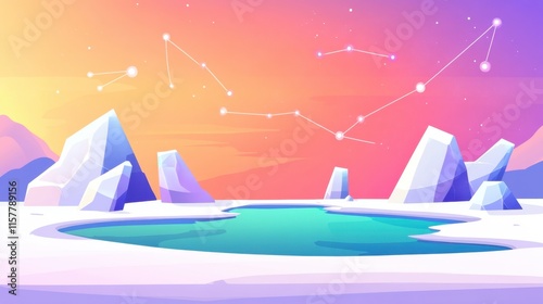 arctic, landscape, twilight, iceberg, star, water, natural, scenery, cool, colourful, tranquil, night, mountain, sky, serene, cold, polar, horizon, glacier, artistic, nature, minimalist, beauty, clear, peaceful, bright, atmospheric, art, fantasy, fantasy art, digital, illustration, icy, calm, seascape, purple, orange, creative, scenic view, wilderness, environment, artwork