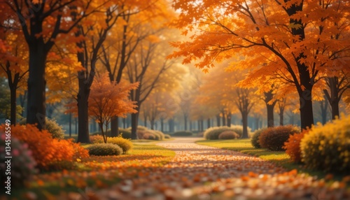 Serene Autumn Park Golden Foliage and Bokeh Light