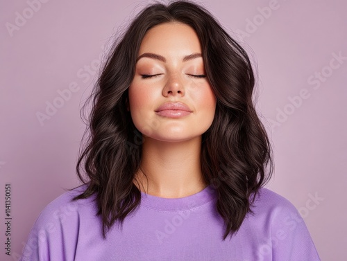serenity, beauty, calmness, confidence, woman, portrait, purple, relaxation, emotion, skincare, natural makeup, fashion, lifestyle, feminine, calmness, closeup, happiness, hair, elegance, stylish, modern, youth, wellness, peaceful, positivity, warmth, simplicity, vibrant, expressive, charming, gentle, artistic, contemporary, casual clothes, facial expression, radiant, emotional, intimate, thoughtful, graceful