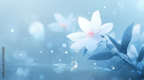 flower, water, digital, painting, blossom, white, serene, calm, delicate, peace, tranquil, nature, art, aesthetic, beauty, soft, pale, blue, still, dripped, leaf, illustration, artwork, graphic, design, background, image, wallpaper, scene, romantic, dreamy, gentle, pure, elegant, subtile, vibrant, shiny, realistic, colours, creative