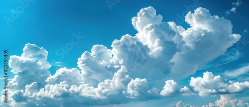 Serene Blue Sky with Fluffy White Clouds