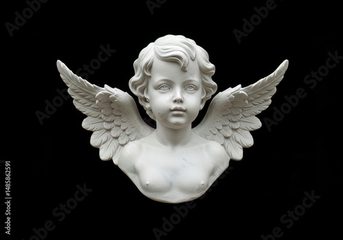 Serene Cherubic Angel Sculpture Wings Isolated Black Background