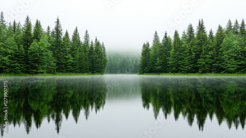 fog, lake, tree, reflections, water, nature, forest, mist, landscape, tranquil, greenery, calm, wilderness, serene, scenic, peaceful, environment, stillness, summer, foliage, ecosystem, natural, beauty, panoramic, tranquil scene, water surface, pine tree, cloudy, remote