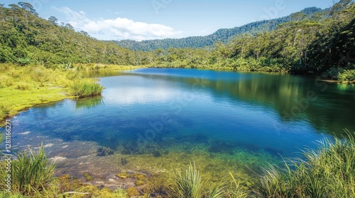 lake, water, clear, tranquil, serene, calm, peaceful, nature, landscape, scenery, greenery, lush, vegetation, forest, tree, plant, grass, sunlight, blue, sky, cloud, environment, ecosystem, wilderness, summer, day, scenic, beautiful, idylli, relaxing, escape, get-away, journey, travel, holiday, vacation, destination, paradise, untouched